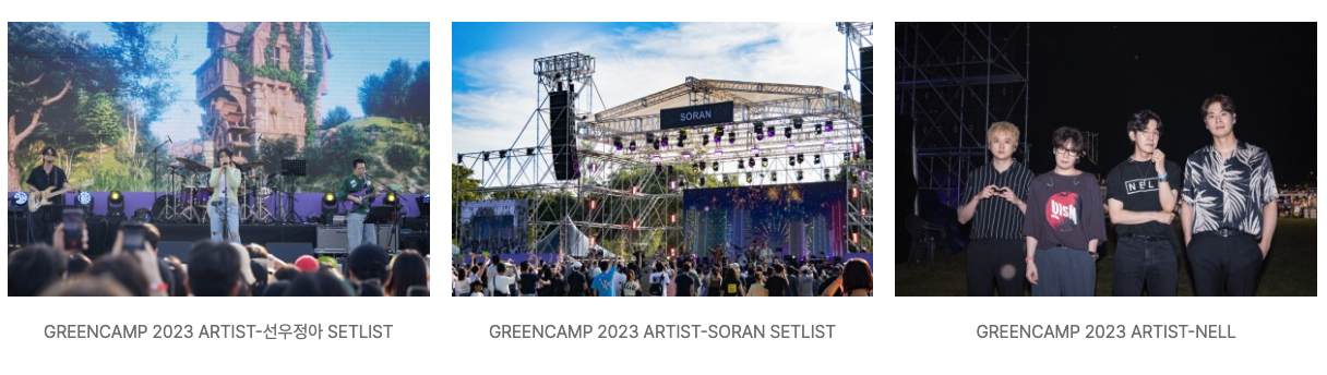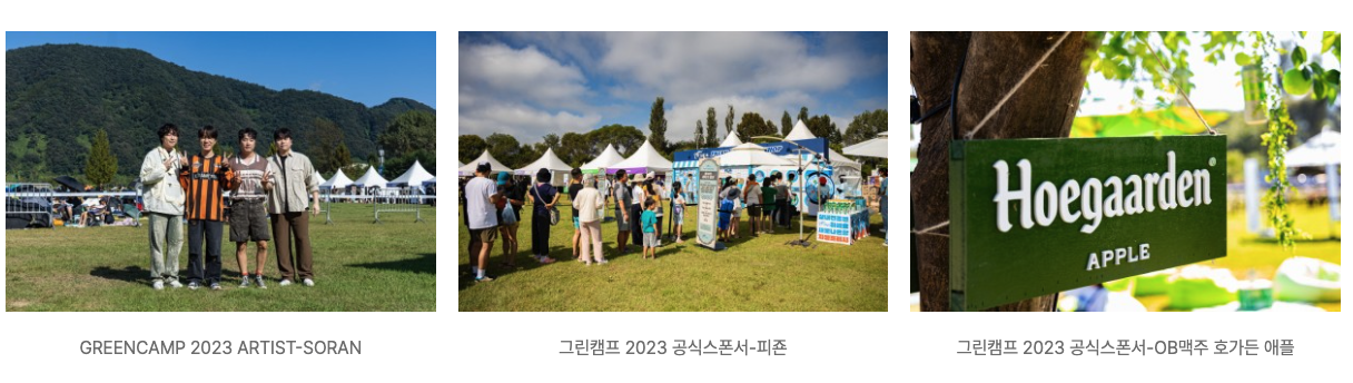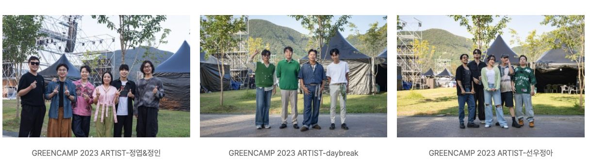 | 공식 라인업은 언제 발표되나요? | 공연 라인업은 행사 1주 전 공식 인스타그램 계정(@greencampfestival)을 통해 발표됩니다. |