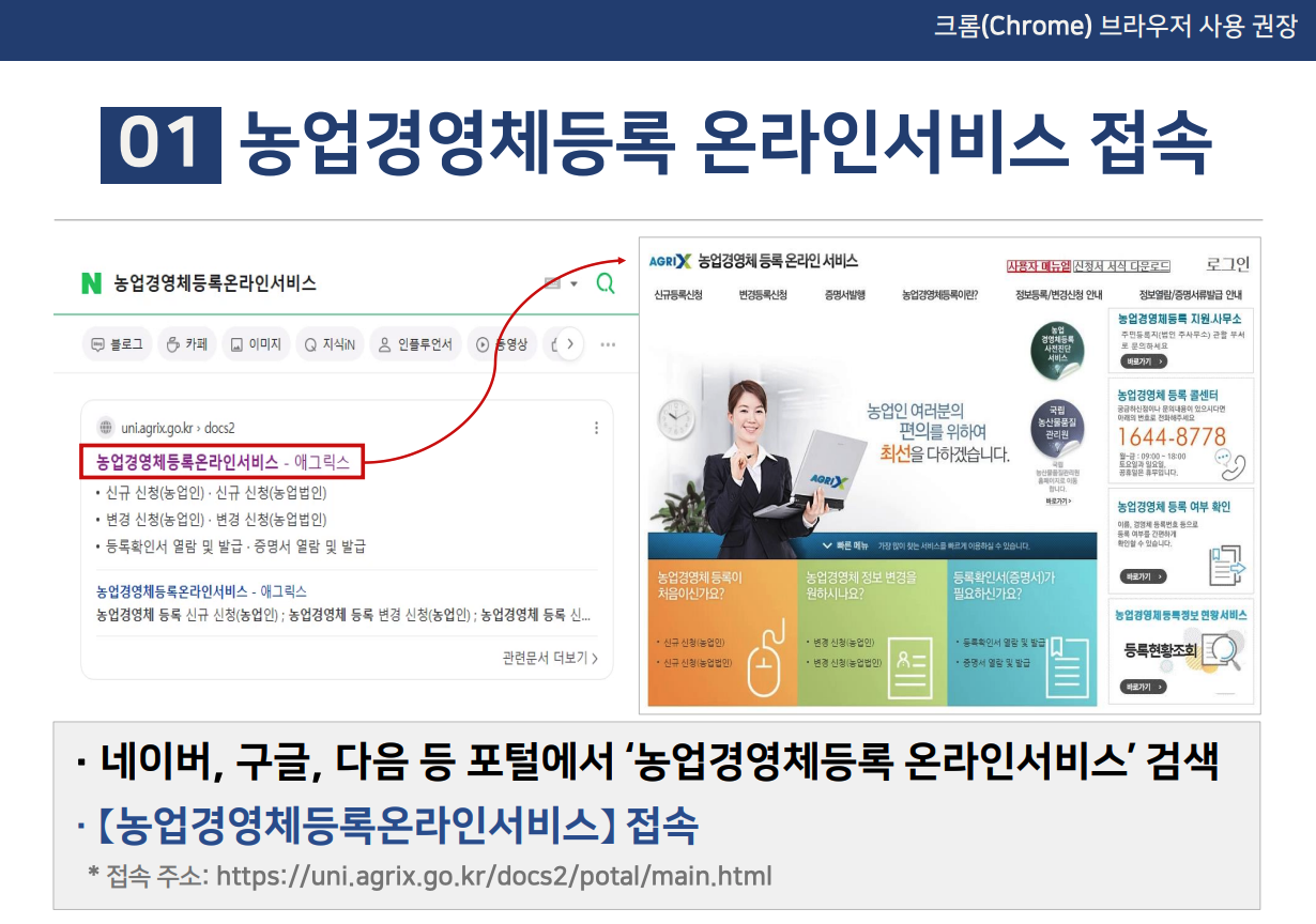 인터넷 검색창에 ‘농업경영체 등록 온라인 서비스’ 입력하거나 위에서 안내드린 곳 참고