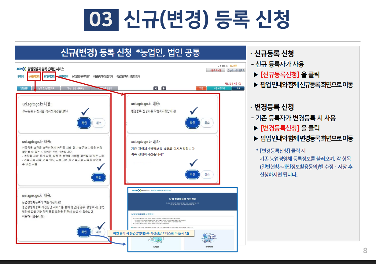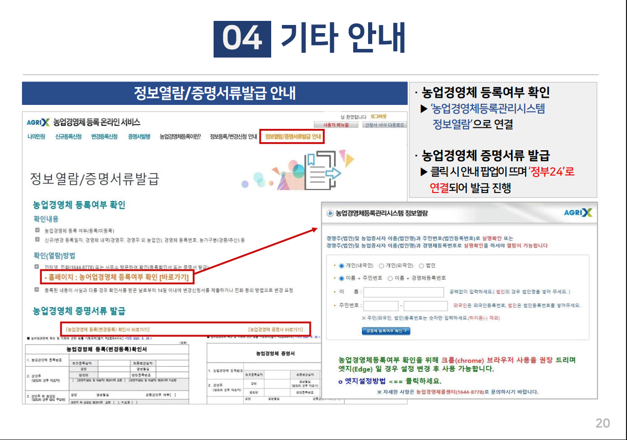 이 등록을 통해 얻을 수 있는 혜택은 단순하지 않습니다. 농업에 필요한 거의 모든 정부지원 정책이 이 등록을 기준으로 진행되기 때문입니다.