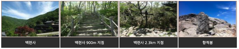 | 가장 인기 있는 코스는 무엇인가요? | 삼공리에서 백련사와 향적봉을 거쳐 영각사로 하산하는 종주코스가 가장 대표적이며 풍경이 뛰어나 많은 분들이 선택합니다. |