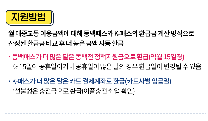 | 환급은 언제 지급되나요? | 이용한 달의 다음 달 중에 자동으로 환급됩니다. 별도 신청은 필요 없습니다. |