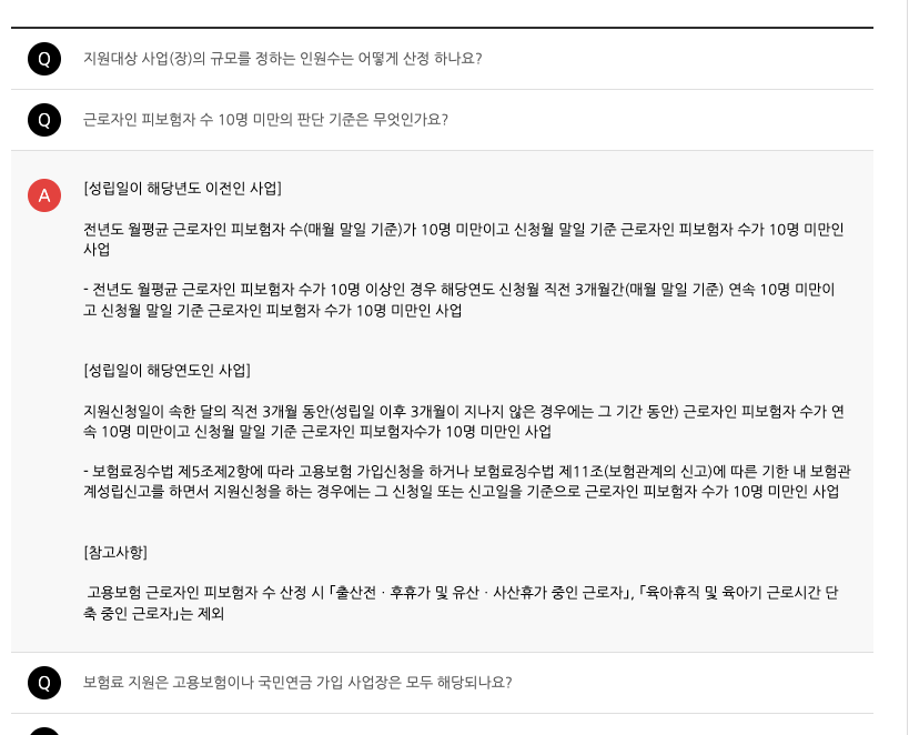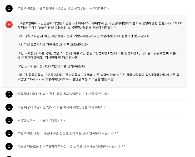 | 중간에 지원이 끊길 수도 있나요? | 네. 보험료를 완납하지 않으면 지원이 중단됩니다. |