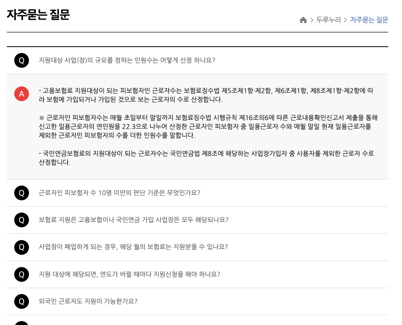 | 두루누리 지원금을 받으면 얼마나 절감되나요? | 고용보험과 국민연금의 80%까지 지원됩니다. |