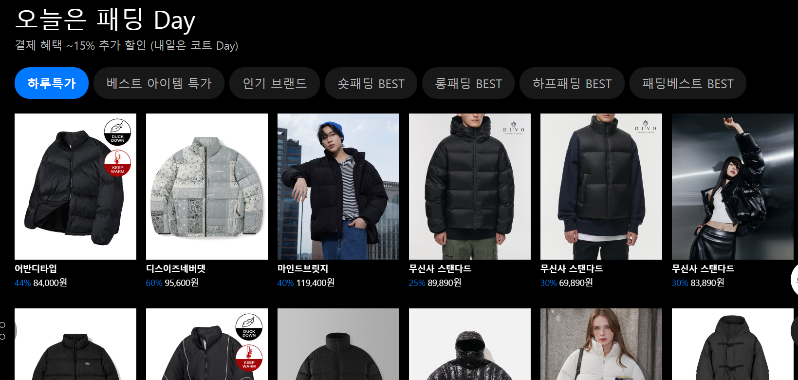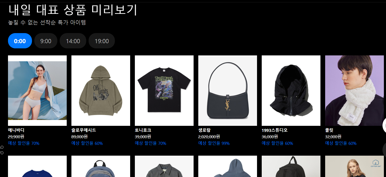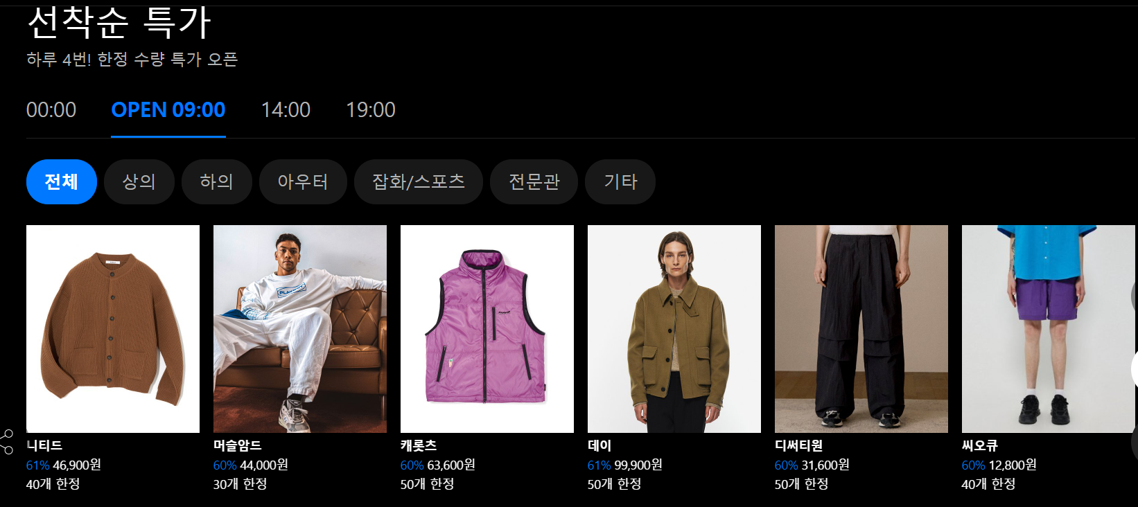 | 카테고리 데이 운영 | 매일 한 가지 카테고리의 상품을 집중 조명 및 할인 |
