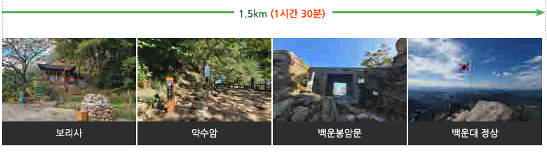 | 백운대 코스 | 백운탐방지원센터 | 3.2km | 약 3시간 30분 | 중간 | 서울 전망 감상 가능, 인기 정상 코스 |