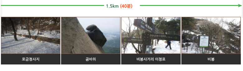 | 비봉 코스 | 진관사입구 | 4.3km | 약 3시간 30분 | 어려움 | 암릉 포함, 스릴 있는 산행 |