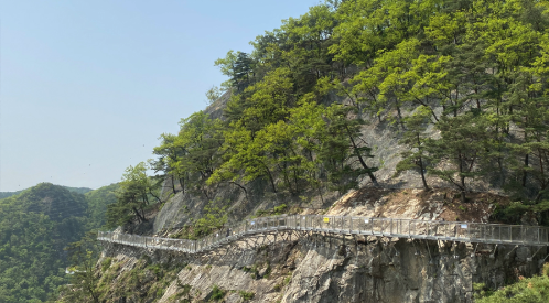 아래로는 깊은 계곡이 흐르고, 양옆으로는 강원도의 기암절벽과 숲이 병풍처럼 펼쳐져 있어, 걸으면서도 절경을 감상할 수 있습니다.