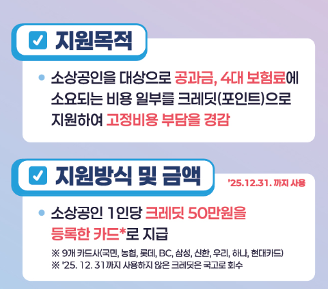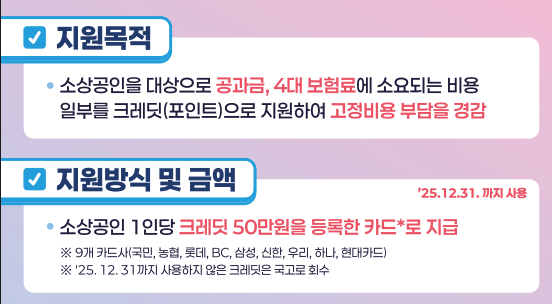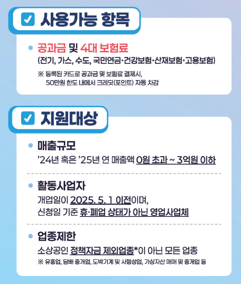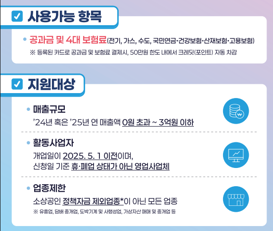 | 지원 대상 | 매출 3억 원 이하의 소상공인 |
