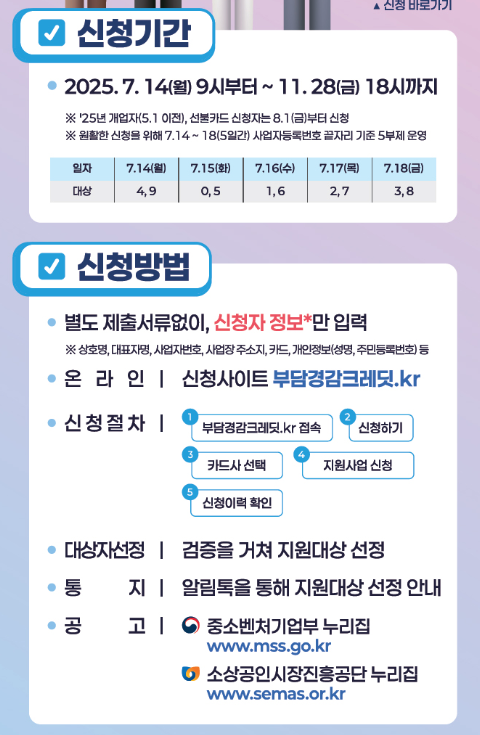 | 기존 사업자 | 2025년 7월 14일(월) ~ 11월 28일(금) |