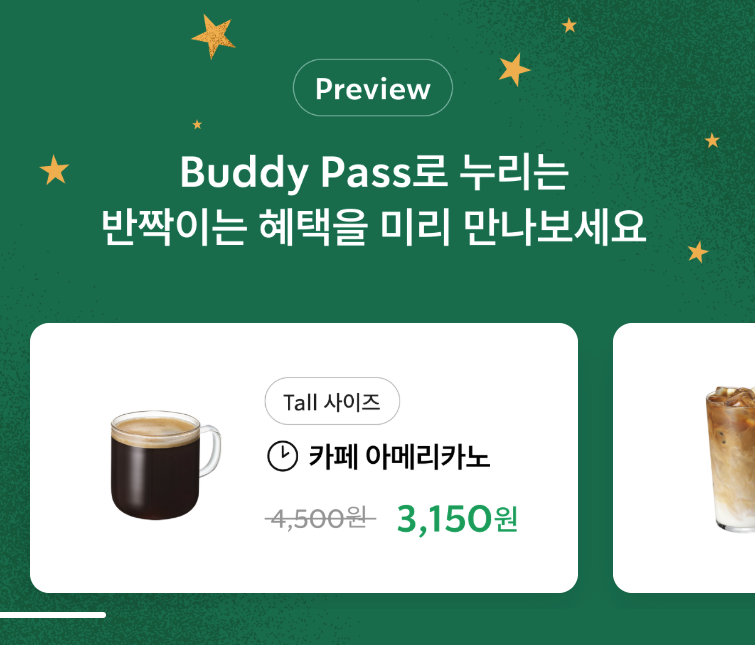 매일 음료 할인을 받을 수 있는 점이 버디패스의 가장 큰 장점입니다. 특히, 오후와 저녁 시간대 스타벅스를 방문하는 고객들에게 매우 유용합니다. (저는 항상 오전에 이용했는데, 이제라도 시간대를 바꿔 보려 합니다)