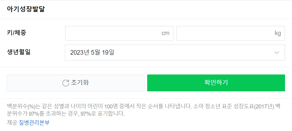 아기성장발달계산기 사용하기