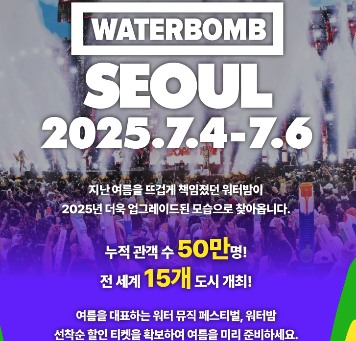 뜨거운 여름을 시원하게 식혀줄 단 하나의 페스티벌, 워터밤 서울 2025가 드디어 돌아왔습니다. 음악, 물, 퍼포먼스가 한데 어우러진 이 축제는 이름만 들어도 벌써 흥이 나죠.