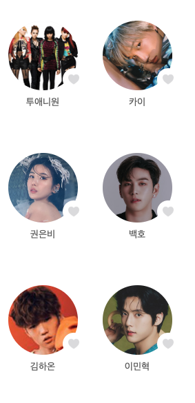 2NE1, 카이, 권은비, 크러쉬, 백호, 청하