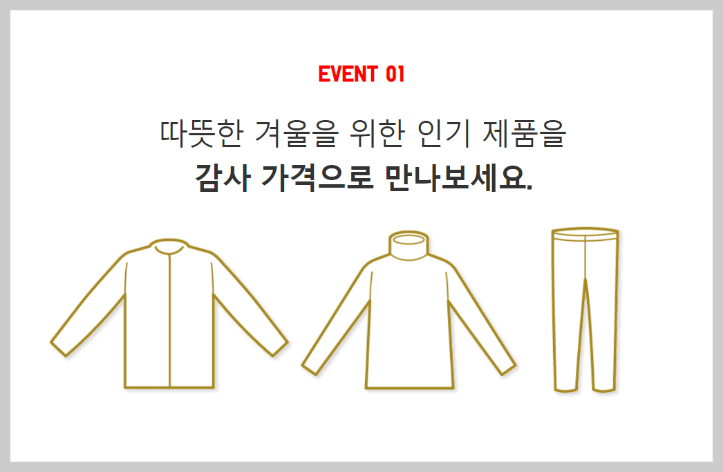 | 멤버쉽 베네핏 | 신규 회원 가입 시 혜택 및 온라인 첫 구매 시 무료배송 |