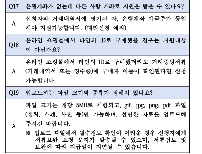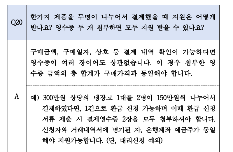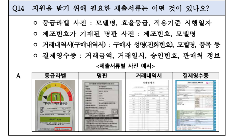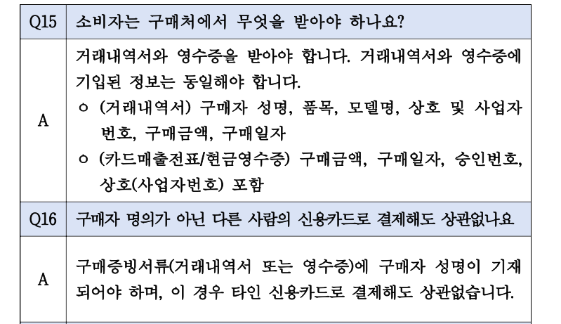 | 필요 서류 | 영수증, 거래내역서, 제품 사진 등 |