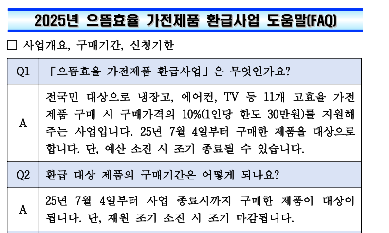 2025년에도 정부가 고효율 가전제품을 구매한 국민에게 환급금을 지원하는 ‘으뜸효율 가전제품 환급사업’이 시작되었습니다. 이 사업은 에너지를 아끼는 고효율 제품을 더 많이 보급하기 위해 마련된 제도입니다.