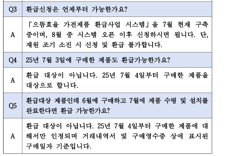Tip! 제품 구매일은 영수증에 적힌 날짜 기준이므로, 반드시 2025년 7월 4일 이후 구매분만 환급 가능합니다.