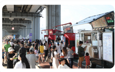 | 현장에 음식 구매나 식사 공간이 있나요? | 총 30여 대의 푸드트럭이 운영되며, 한강 전망이 있는 달빛 테이블에서 식사가 가능합니다. |