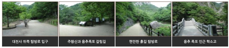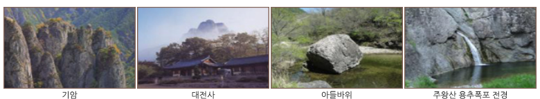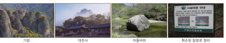 | 주왕계곡 코스 | 약 5.3km | 약 2시간 10분 | 하급 | 상의주차장 – 용추폭포 – 내원동 |