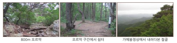 | 자연 감상 위주 | 주봉, 절골 | 다양한 지형과 풍경 감상 가능 |