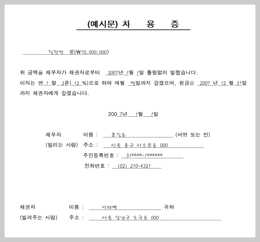 2. 법적 효력 있는 차용증 양식 작성법