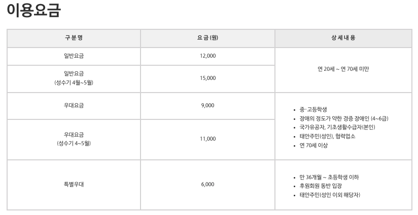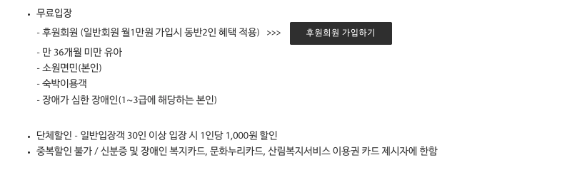 | 입장 요금 | 성인 15,000원 / 어린이 6,000원 / 36개월 미만 무료(서류 지참 시) |