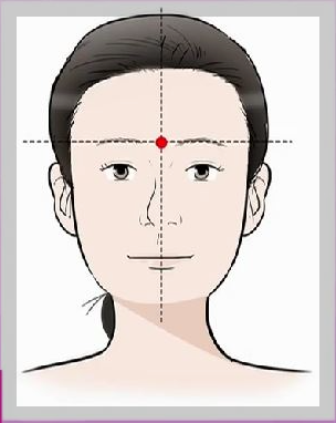 다음 혈은 바로 인당혈입니다.아래 이미지에 나온 혈이 바로 그곳인데 여기를 손으로 꾹꾹 눌러 줍니다. 위의 영양혈과 아래 인당혈을 반복하여 마사지해 주다 보면 아이의 막힌 한 쪽 코가 뚫리는 경험을 맛보실 수 있을 겁니다. 물론 여기서 코막힘이 뚫리지 않을 경우도 많이 있습니다. 그럼 저는 다음 단계를 진행합니다.