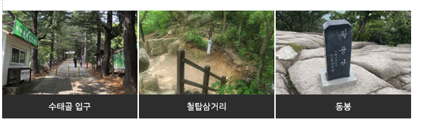 | 동봉 탐방코스 | 염불암 | 약 5km | 약 2시간 30분 | 하 | 염불암 → 동봉 → 하산 |
