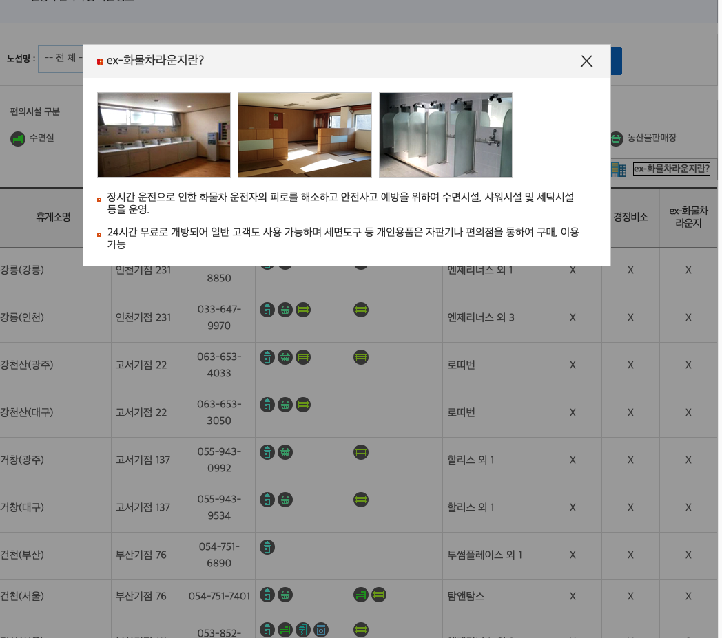 표 가장 우측에 화물차 라운지 정보 확인하시면 됩니다.