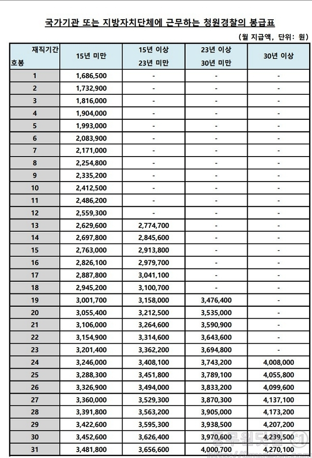 2023 청원 경찰 봉급표, 최신 연봉 및 복지 전체 가이드