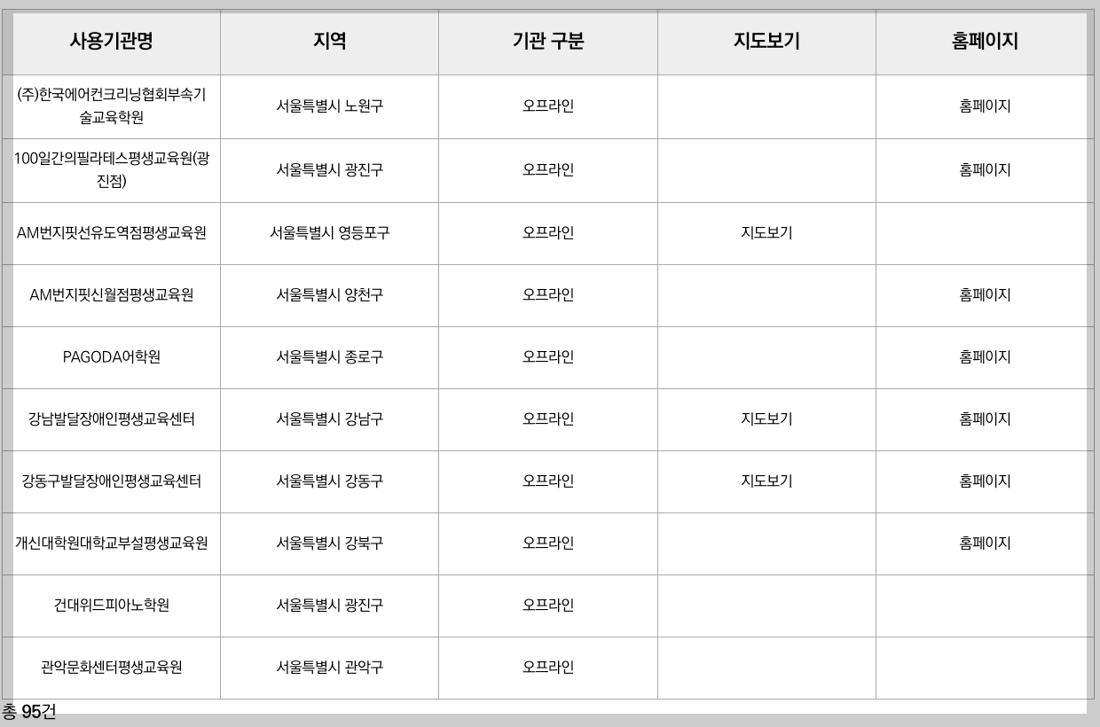 | 사용 가능한 곳 | 서울시 등록 평생교육기관 (온라인/오프라인 모두 포함) |