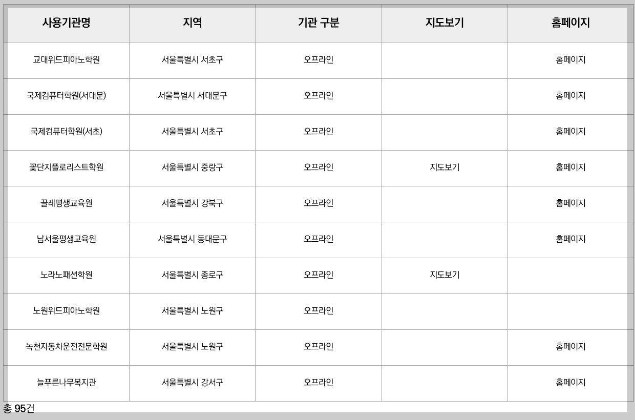 | 방문 신청 | 각 자치구청 평생교육과 방문 접수 | 65세 이상 또는 장애인 등 인터넷 사용 어려운 대상자 |