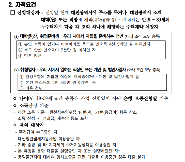 대학생·대학원생·취업준비생 | 대전 거주 또는 재학 중, 무소득 또는 아르바이트 등 | 본인 연소득 4,500만 원 이하 + 부모 합산 연소득 7,000만 원 이하 |