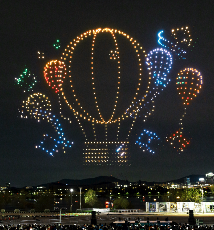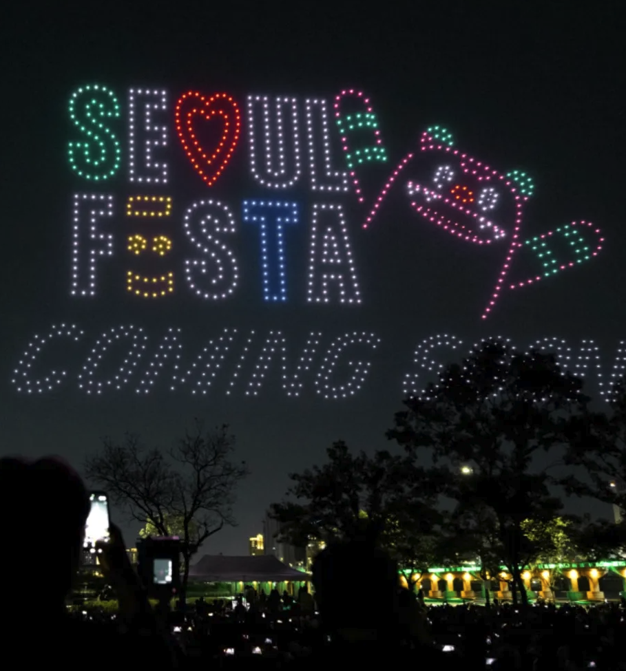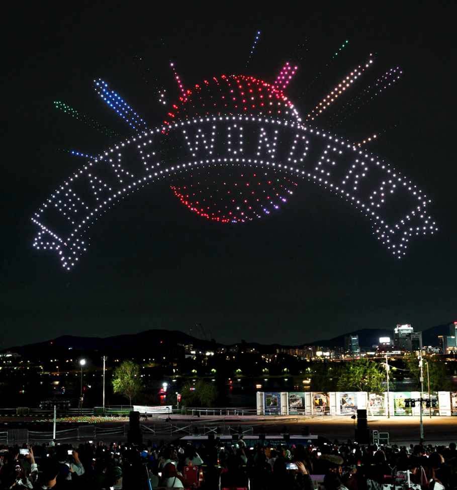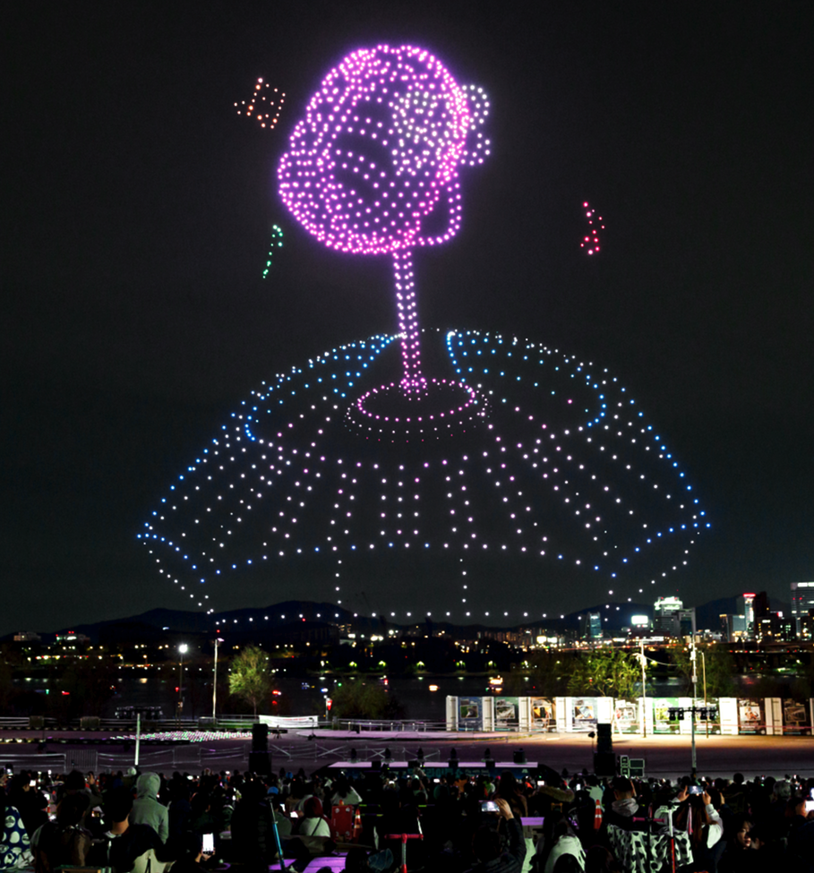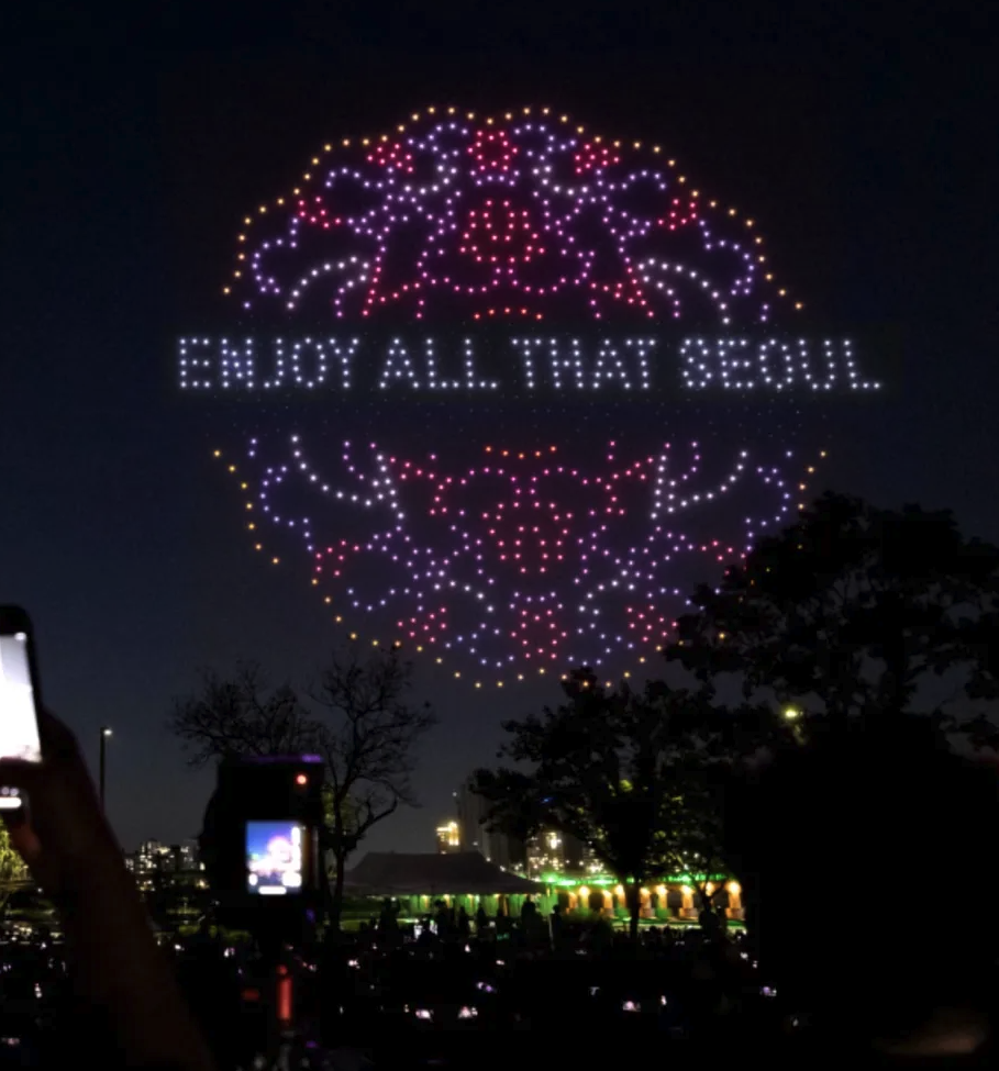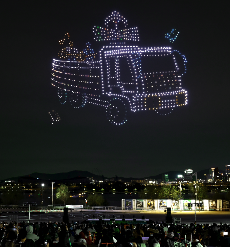 이번 드론쇼는 무려 2,000대의 드론이 한강 위에서 펼치는 스펙터클한 퍼포먼스입니다.드론들이 하늘에서 별자리, 동화 속 장면, “SEOUL” 문구 등을 형상화하며 입체적인 연출을 보여주죠.