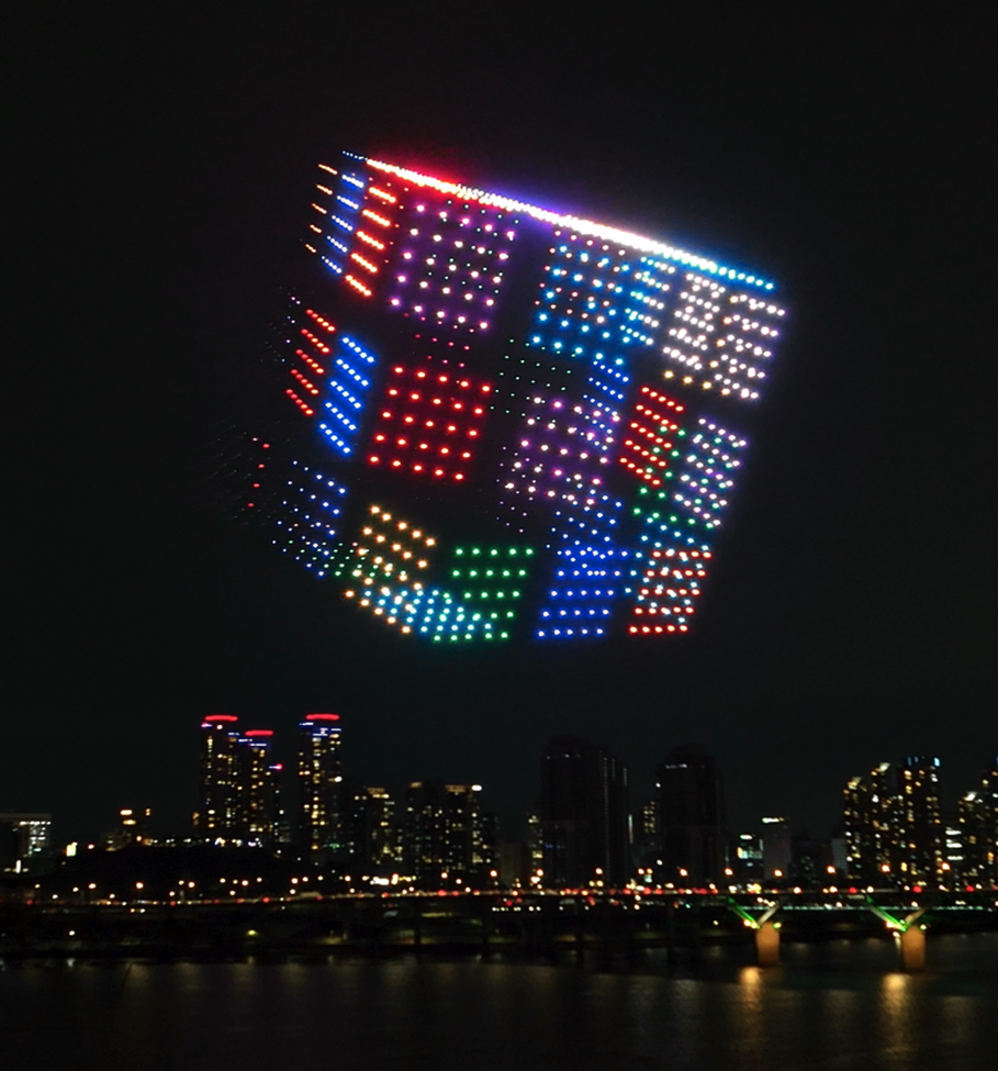 2025년 한강의 밤을 장식할 특별한 공연, 드론 라이트쇼가 진행 중입니다.