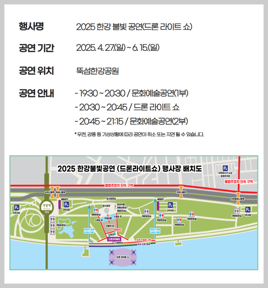 | 행사명 | 2025 한강 불빛 공연 (드론 라이트쇼) |